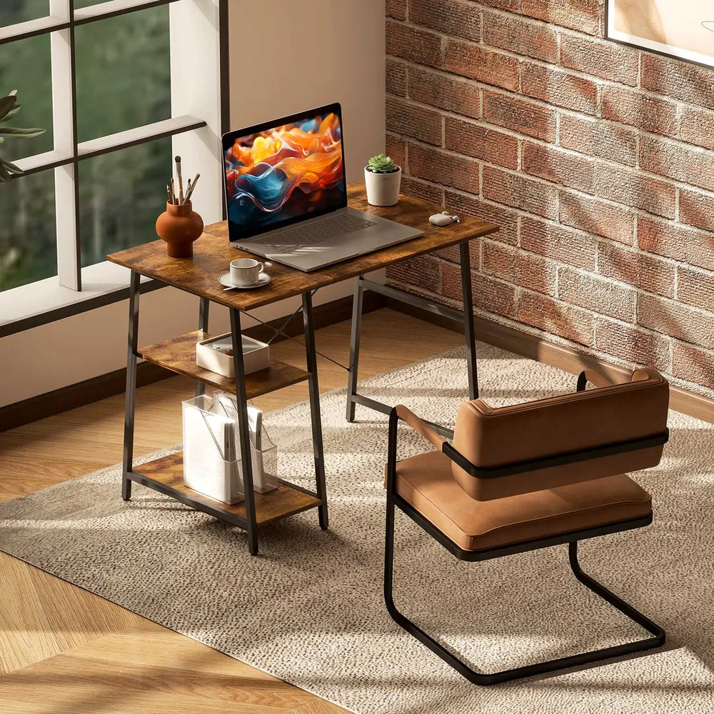 HOMCOM Industrial-Style Work Desk, with Shelves - Brown/Black