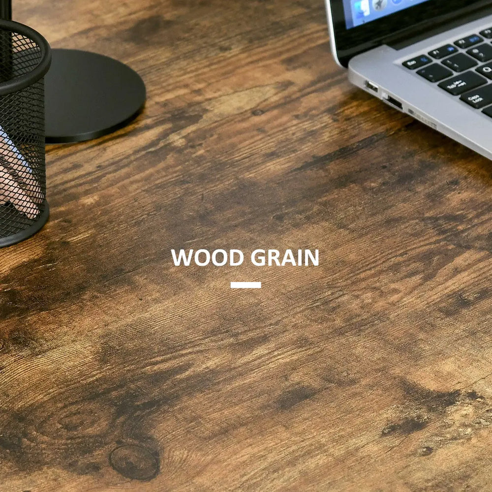 This HOMCOM industrial-style computer desk is a great piece for the home. The metal frame forms a tough core structure, making it steady enough to work in all day long. The work desk features a large table top to freely work from, with two shelves below offering easy storage for books, folders, documents etc. The shelves are made from particle board, covered in a beautiful wood-effect, working with the black frame colour for a striking look. Finished with six feet to protect floor.