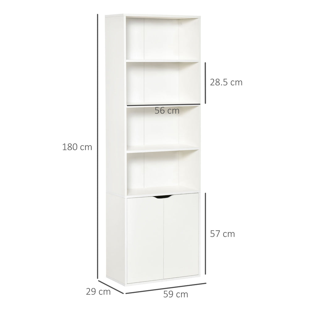 HOMCOM 6-Tier Tall Bookcase, Bookshelf with 4 Open Shelves and Double Door Storage Cabinet, Freestanding Display Rack for Living Room, Bedroom, Home Office, Study, 59 x 29 x 180cm, White