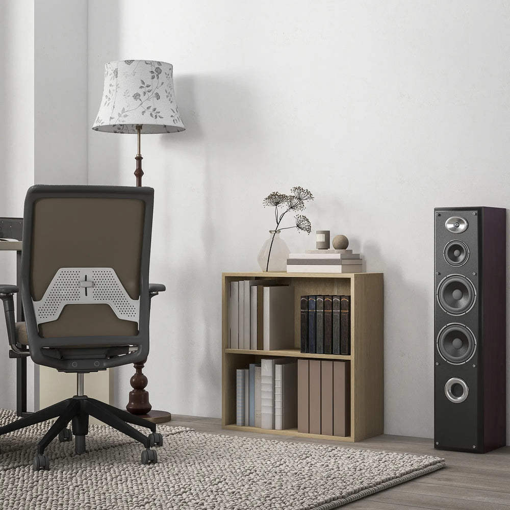 HOMCOM 2 Tier Bookshelf, Low Bookcase with Adjustable Shelf, 2 Compartments for Home Office, Living Room, Study, Natural