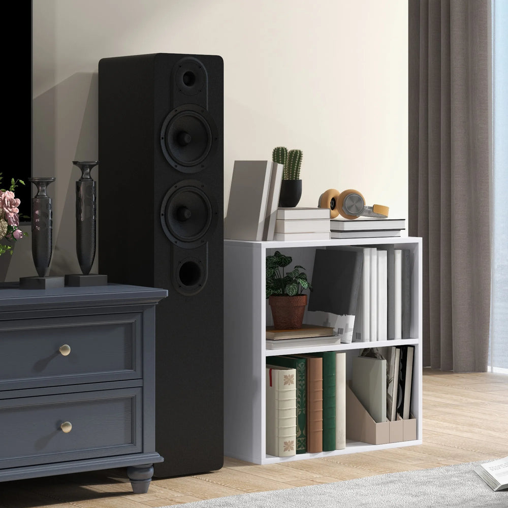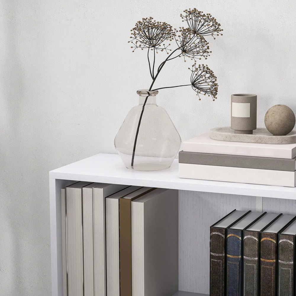 HOMCOM 2 Tier Bookshelf, Low Bookcase with Adjustable Shelf, 2 Compartments for Home Office, Living Room, Study, White