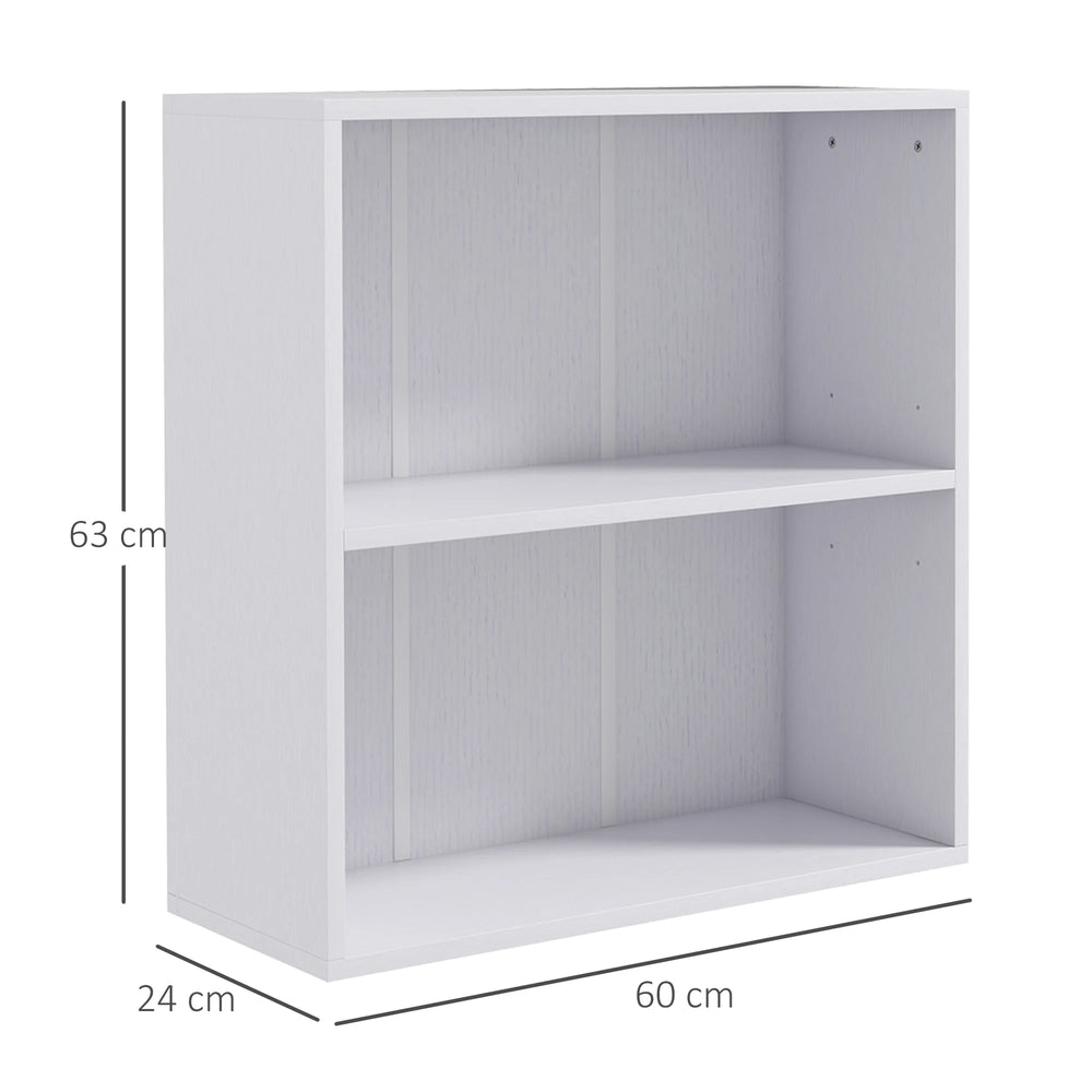 HOMCOM 2 Tier Bookshelf, Low Bookcase with Adjustable Shelf, 2 Compartments for Home Office, Living Room, Study, White is backordered and will ship as soon as it is back in stock.