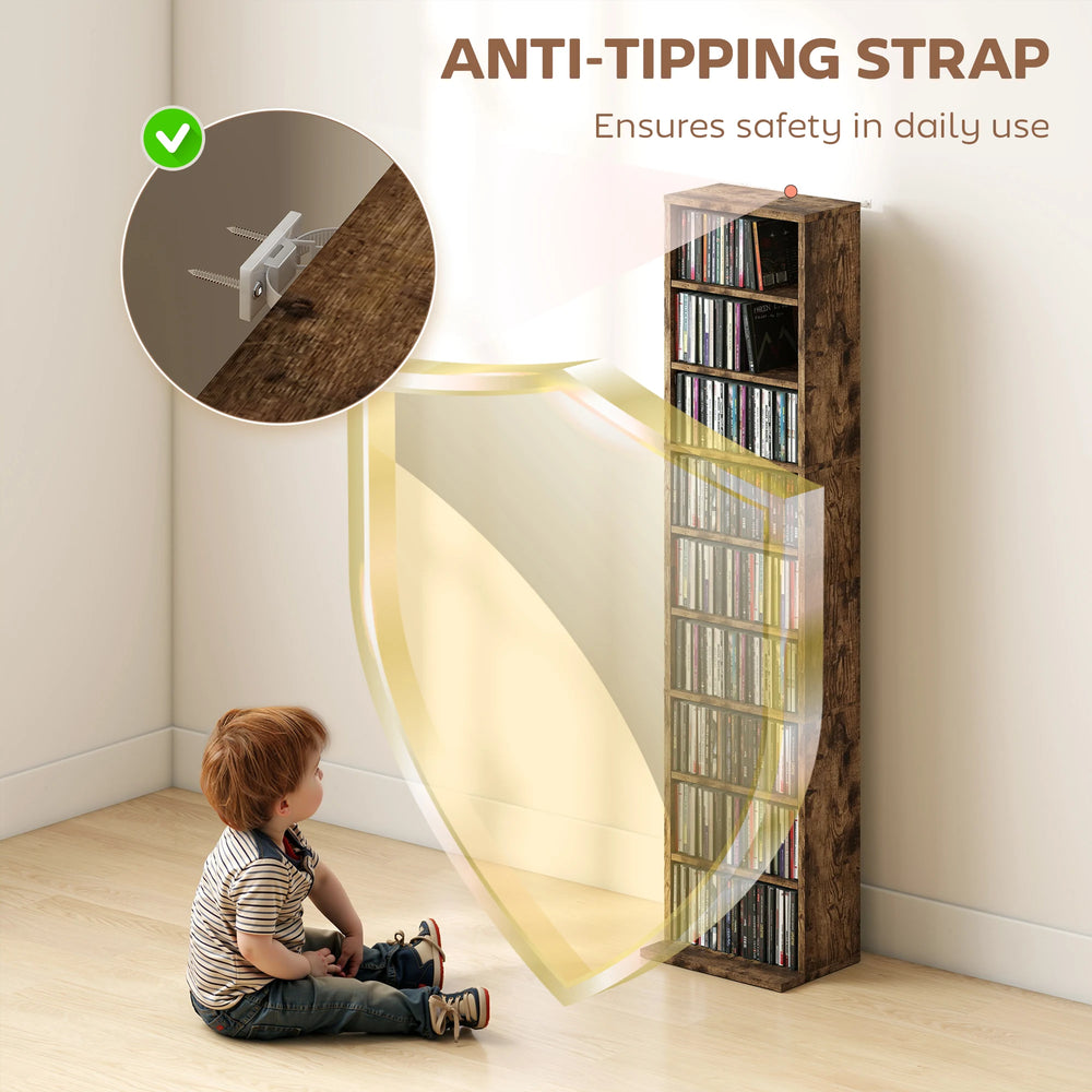 HOMCOM 260 Narrow CD Storage Unit - Rustic Brown