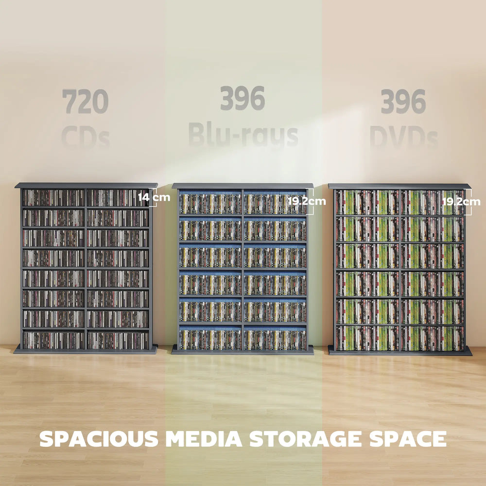 - 12 adjustable shelves, holds up to 720 CD: Keep all your collection in a place. CD storage tower either holds 396 DVDs or 396 Blu-rays
