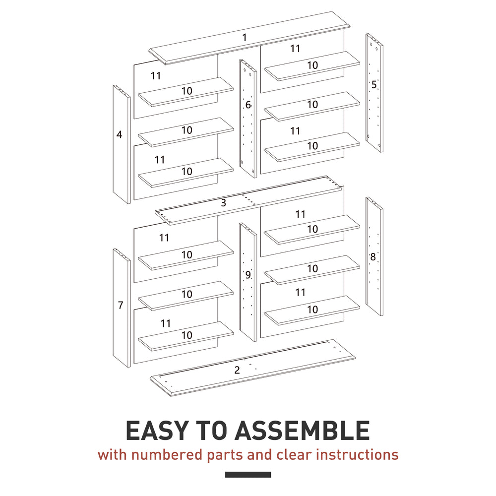 - 16 compartments, with 12 adjustable shelves: room for 720 CDs, 396 DVDs or 396 Blu-rays