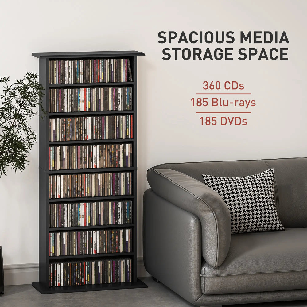 - Six adjustable shelves, holds up to 360 CDs: Keep your collection in a place. CD storage tower either holds 185 DVDs or 185 Blu-rays