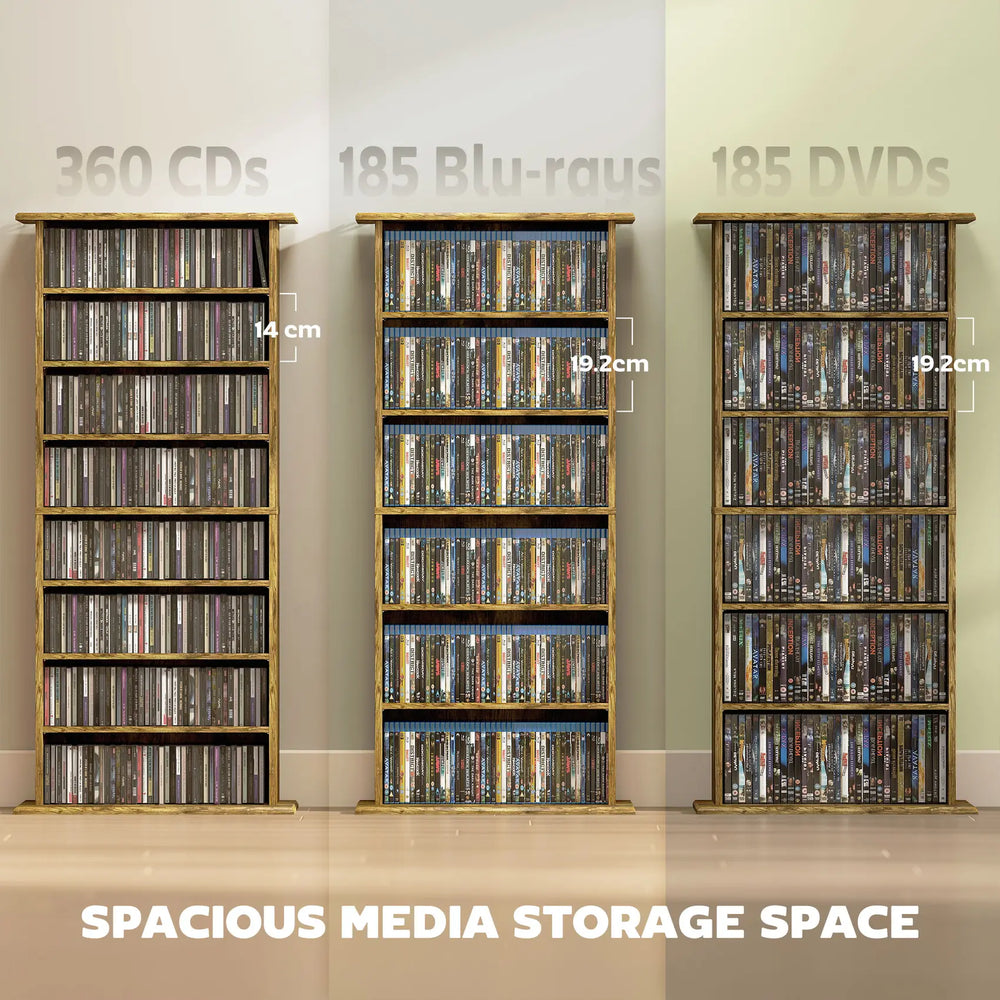This HOMCOM DVD rack showcases 8 shelves, with 6 adjustable shelves: room for up to 360 CDs, 185 DVDs or 185 Blu-rays. Made from particle board, the CD shelf's structure is reliable and is made to be used every day. Coming with anti-tipping straps to fix to a wall, so our HOMCOM DVD shelf doesn't fall forwards and cause damage.