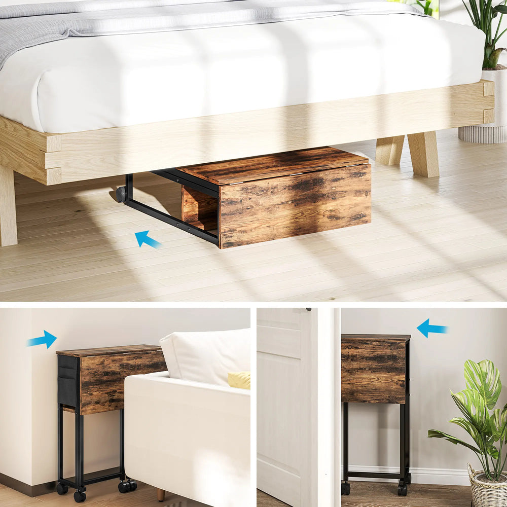 - Drop leaf design: Transforms from 21 cm as a compact side table to 50 cm as a functional home office desk when you lift the side up. Great for small spaces, it doesn't take up room when not being used