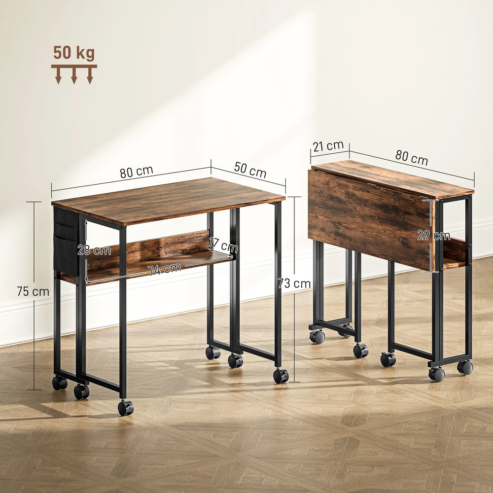 Maximise work space, even in small spaces with this HOMCOM drop leaf computer table. When folded, it is 21 cm and extends to 50 cm - plenty of room for you to work. Features a lower shelf and side bag for close-by holding space for all the essentials. Plus, you can wheel this study desk anywhere with ease, thanks to six 360 swivel casters - complete with four brakes.
