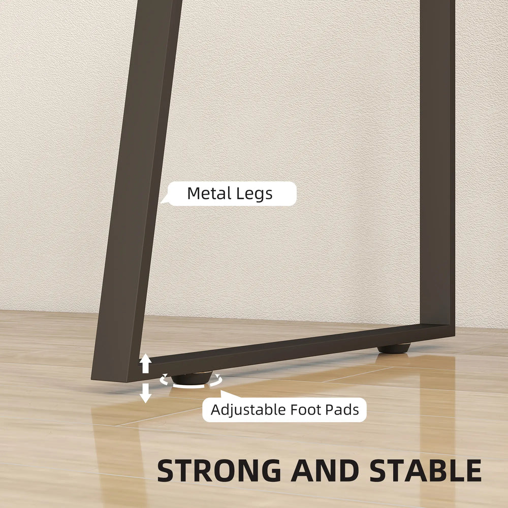 - Solid and stable: Crafted from prticle board, MDF and robust metal legs, this writing desk offers dependable support for your devices and lasting durability. Adjustable foot pads keep the desk stable even on uneven floors