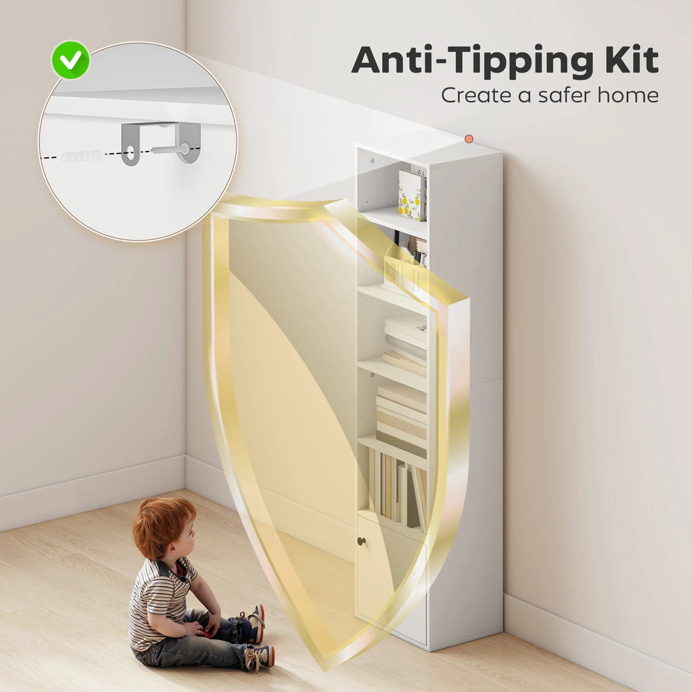 - Solid and secure: Built with robust particleboard and MDF, each shelf of this bookcase supports up to 8 kg, while the included anti-tipping kit and non-slip foot pads for added safety and stability