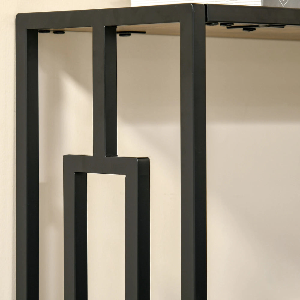Bring a beautiful finishing touch to your home with this console table from HOMCOM. Made from metal for a supportive core structure, it's crafted with a unique and art-deco inspired pattern on the side: sure to catch attention instantly. Two particle board shelves on the top and bottom give lots of holding room, both covered in melamine for a smooth finish - ideal for busy and hectic lifestyles. A unique take on a traditional furniture staple.