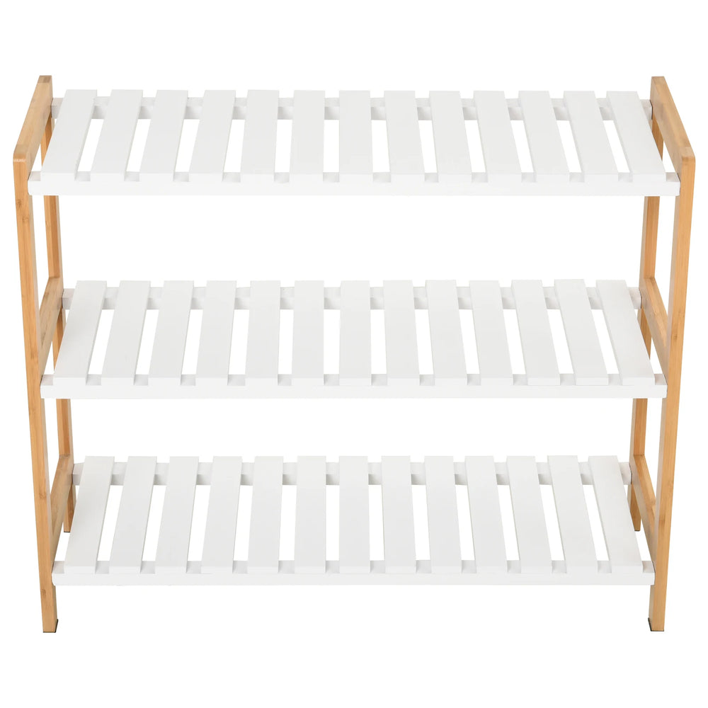 HOMCOM 3-Tier Shoe Rack Wood Frame Slatted Shelves Spacious Open Hygienic Storage Home Hallway Furniture Family Guests 70L x 26W x 57.5H cm - Natural
