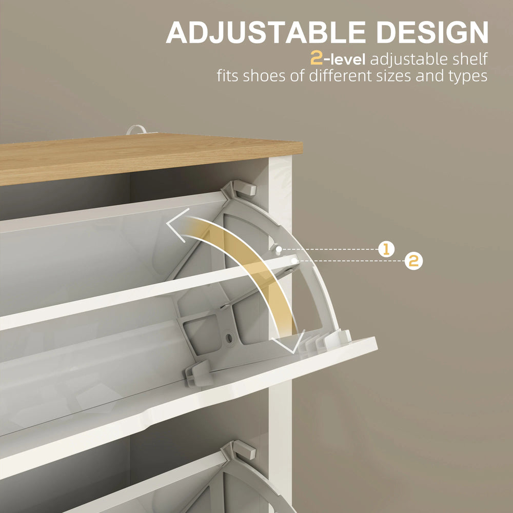 HOMCOM Slim Shoe Cabinet, Narrow Shoe Cupboard with 2 Flip Drawers, Adjustable Shelves for 12 Pairs of Shoes, High Gloss White