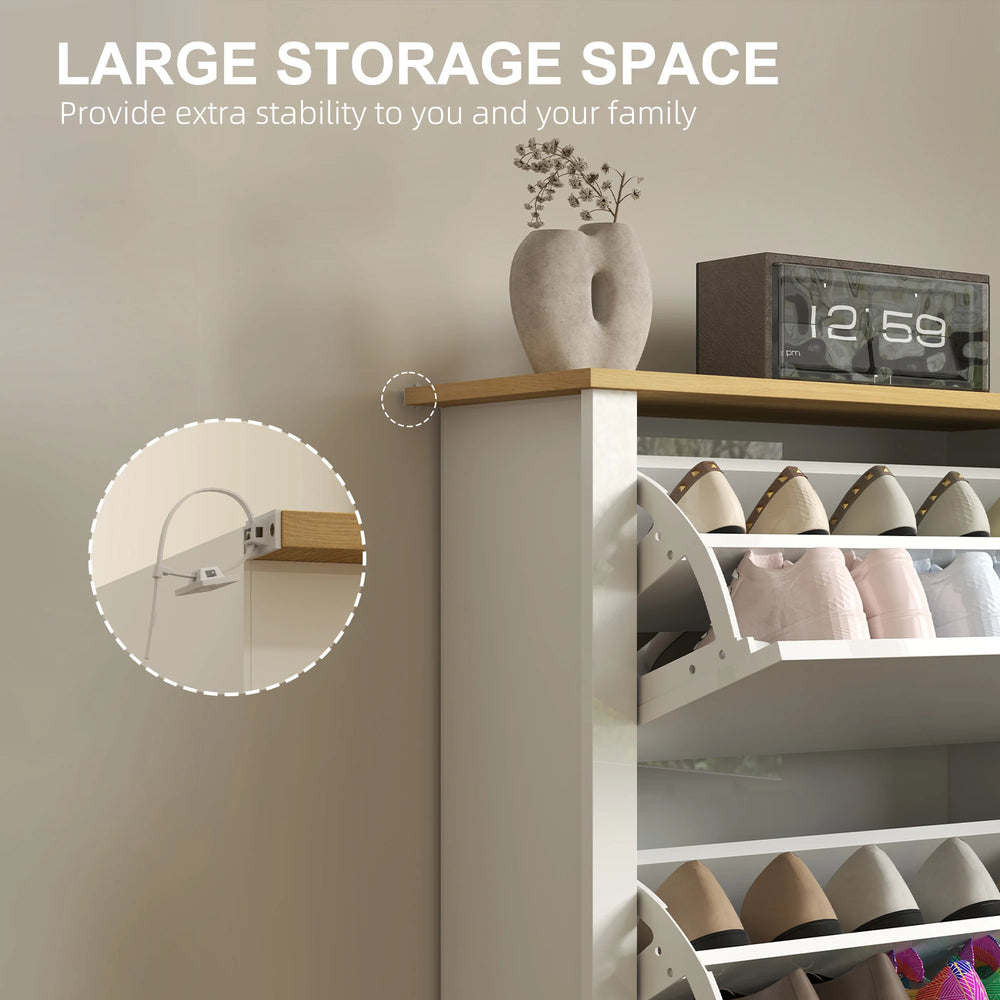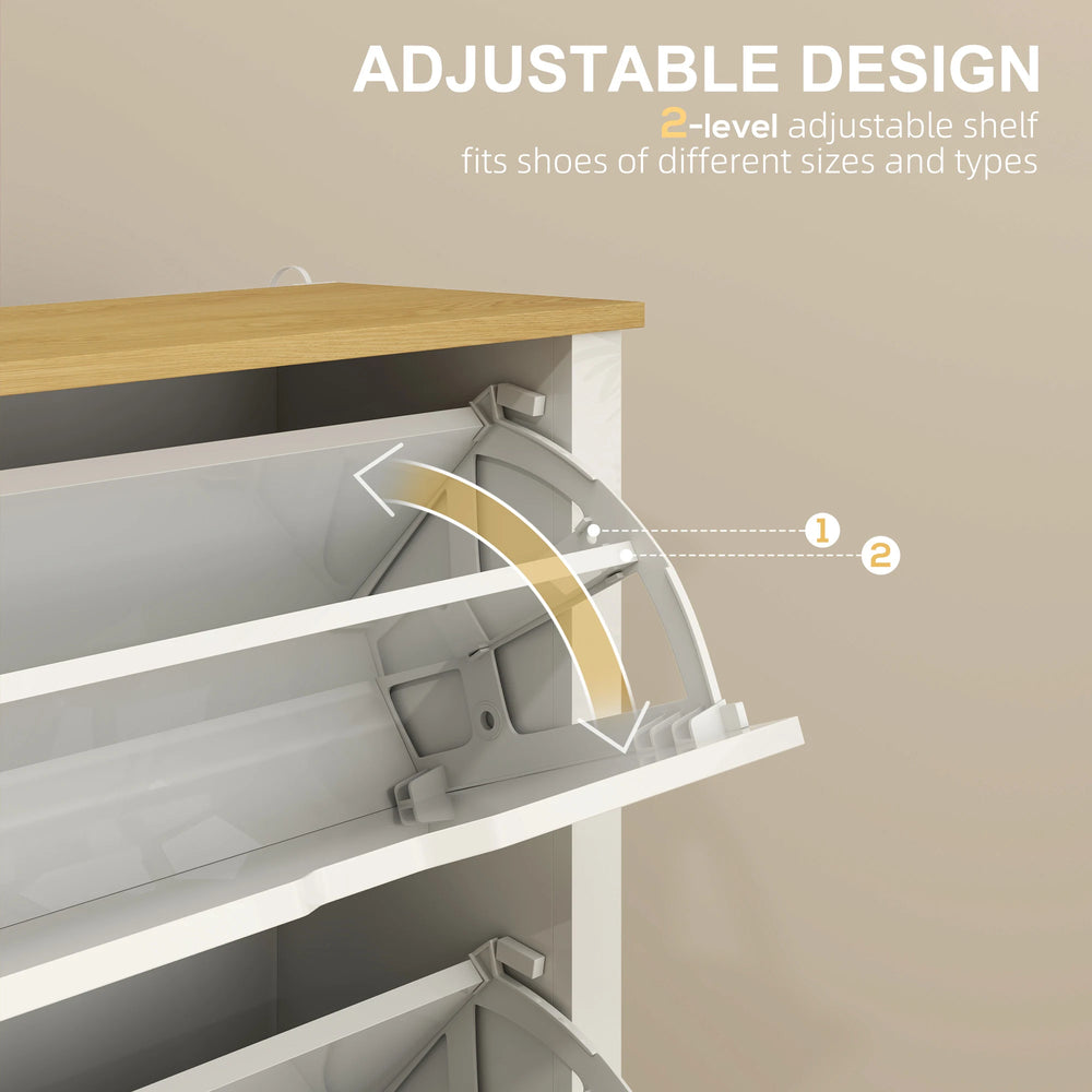 HOMCOM Slim Shoe Cabinet, Narrow Shoe Cupboard with 3 Flip Drawers, Adjustable Shelves for 18 Pairs of Shoes, High Gloss White