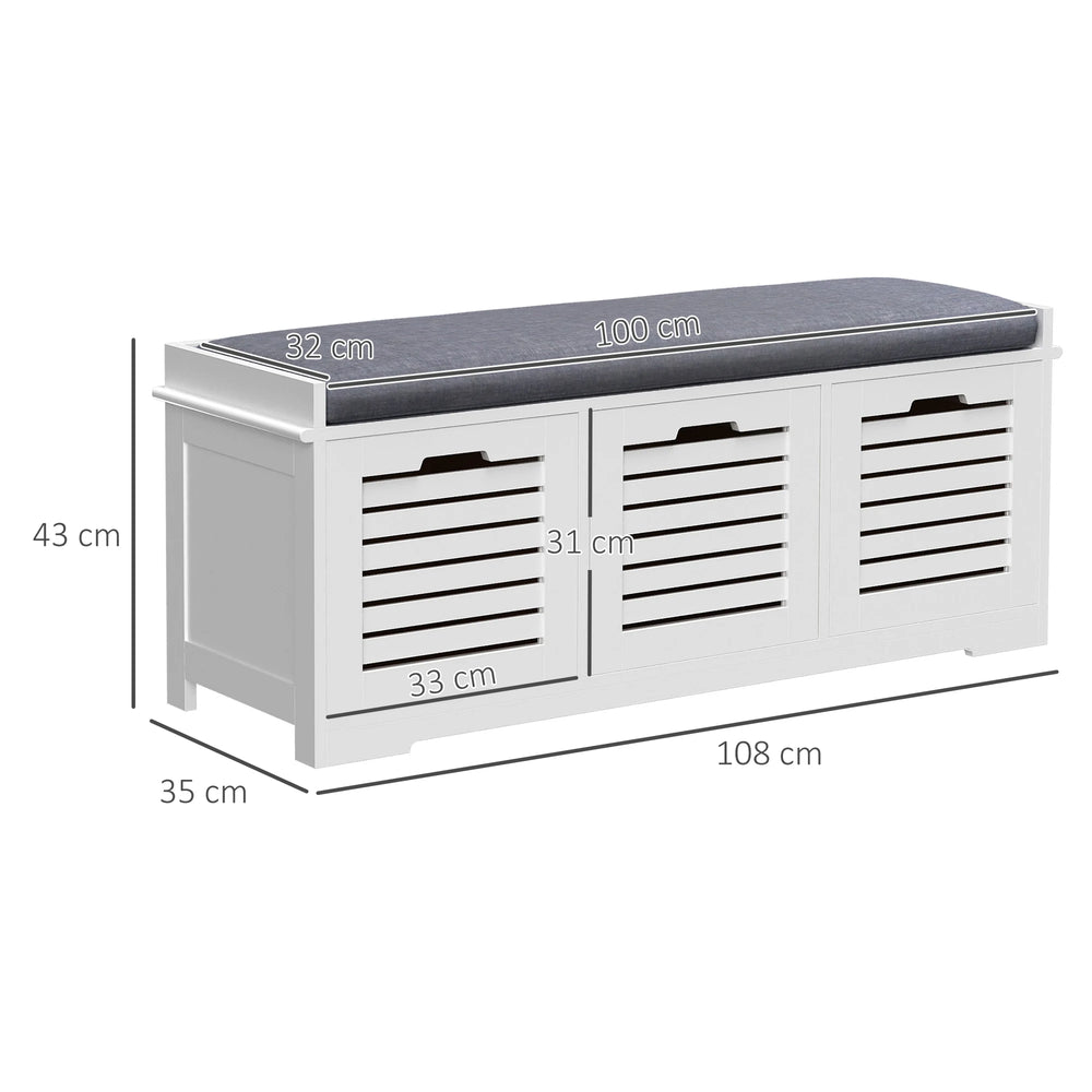 HOMCOM 3-Drawer Shoe Storage Bench - White