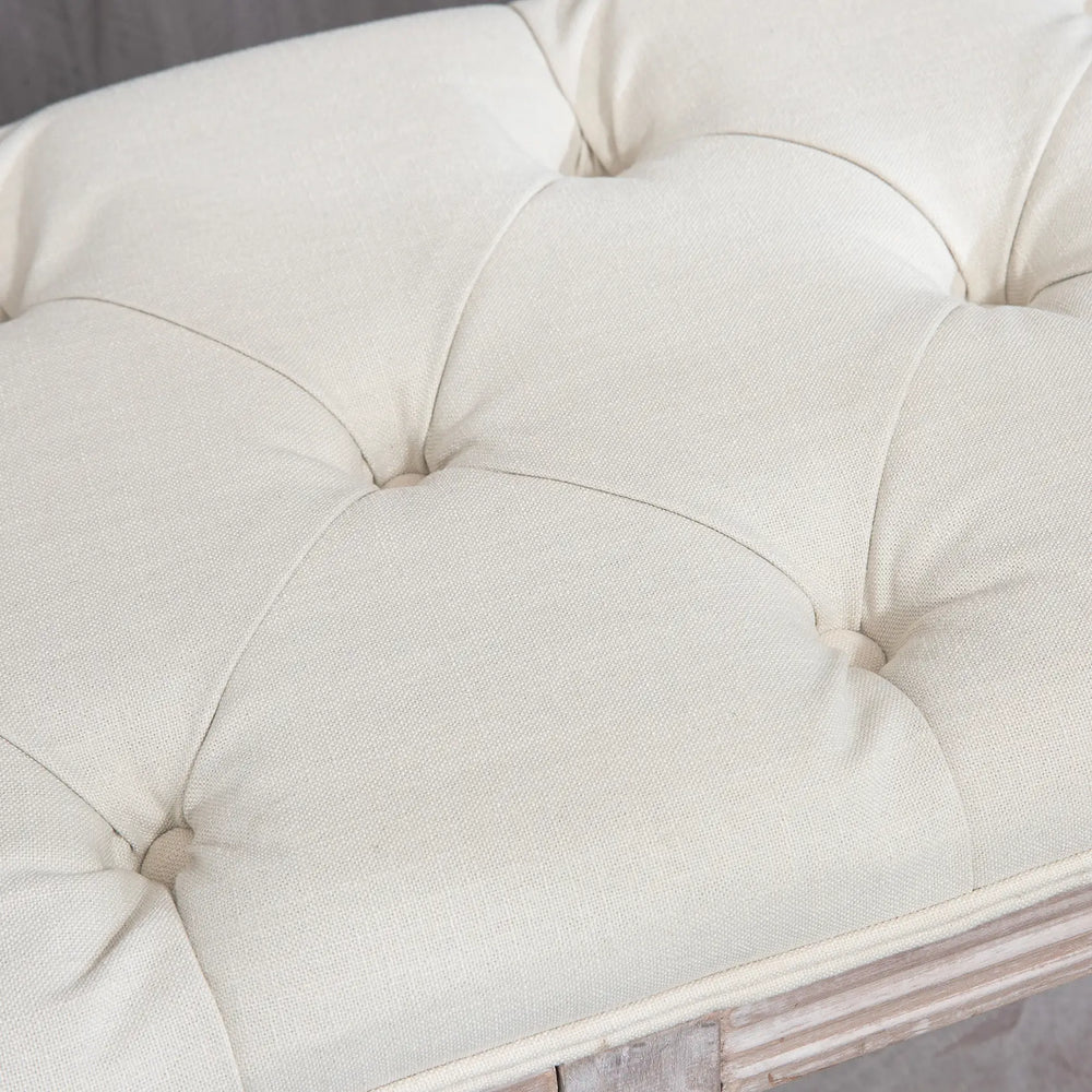 HOMCOM 2-Tier Bed End Bench, Vintage Stool, Wooden Window Seat with Storage Shelf, Button Tufted Upholstered Footstool for Living Room, Bedroom, Entryway, Cream White