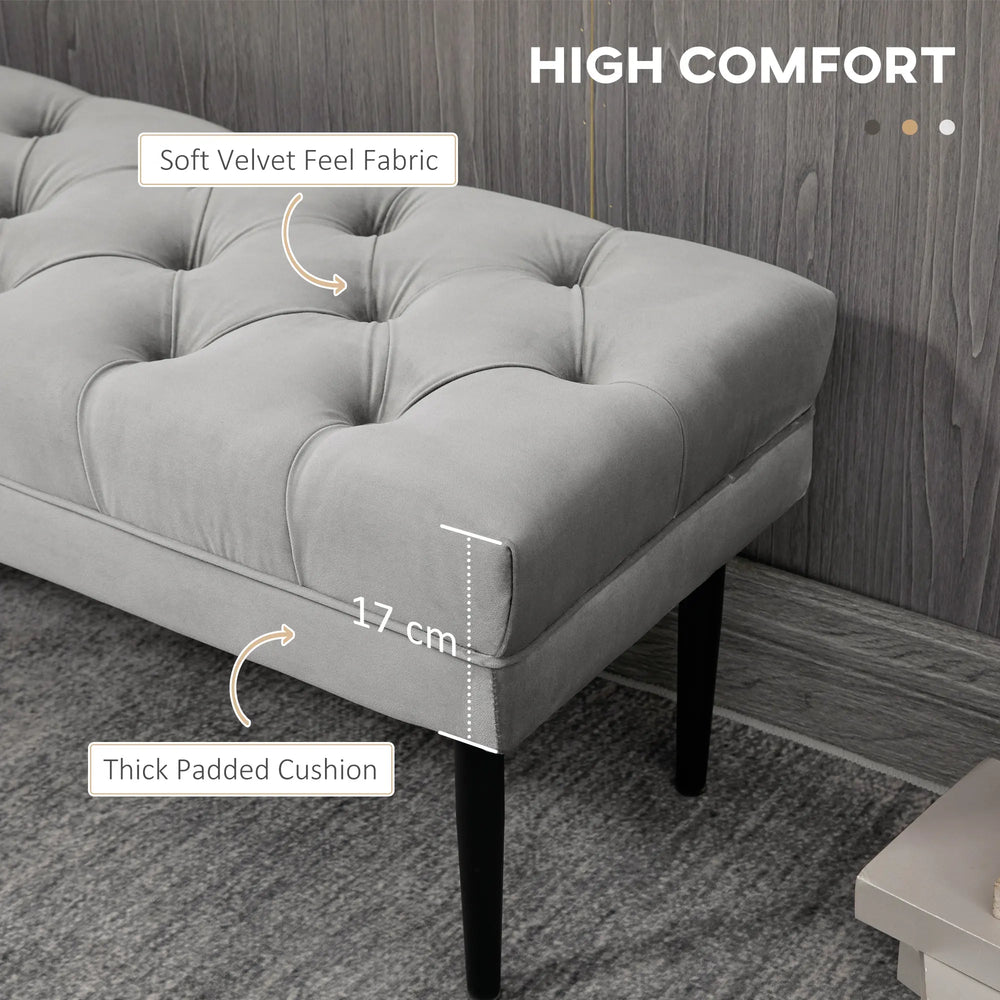 HOMCOM Velvet Bed End Bench, Button Tufted Window Seat, Hallway Shoe Bench, Upholstered Accent Lounge Chair Stool for Living Room, Bedroom, Grey