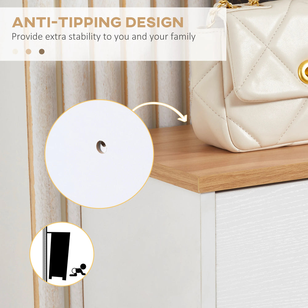 - Anti-tipping straps included: Attach this white shoe cabinet to a wall so it doesn't fall forwards.