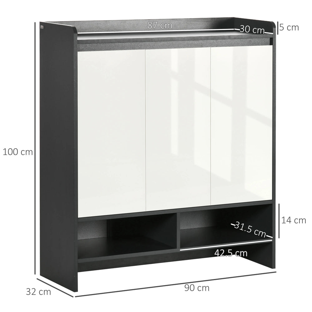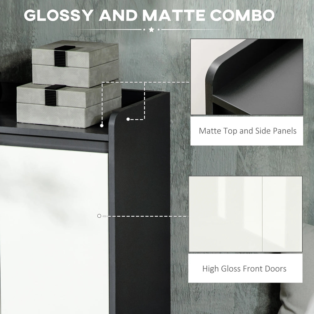 HOMCOM High Gloss Shoe Cabinet with White Doors and Open Shelves, Hallway Shoe Cupboard Storage Organizer for 19 Pairs of Shoes, Grey