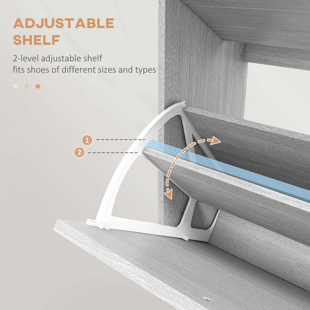 HOMCOM 12-Shoe Flip Drawer Storage Cabinet - Grey Wood-Effect