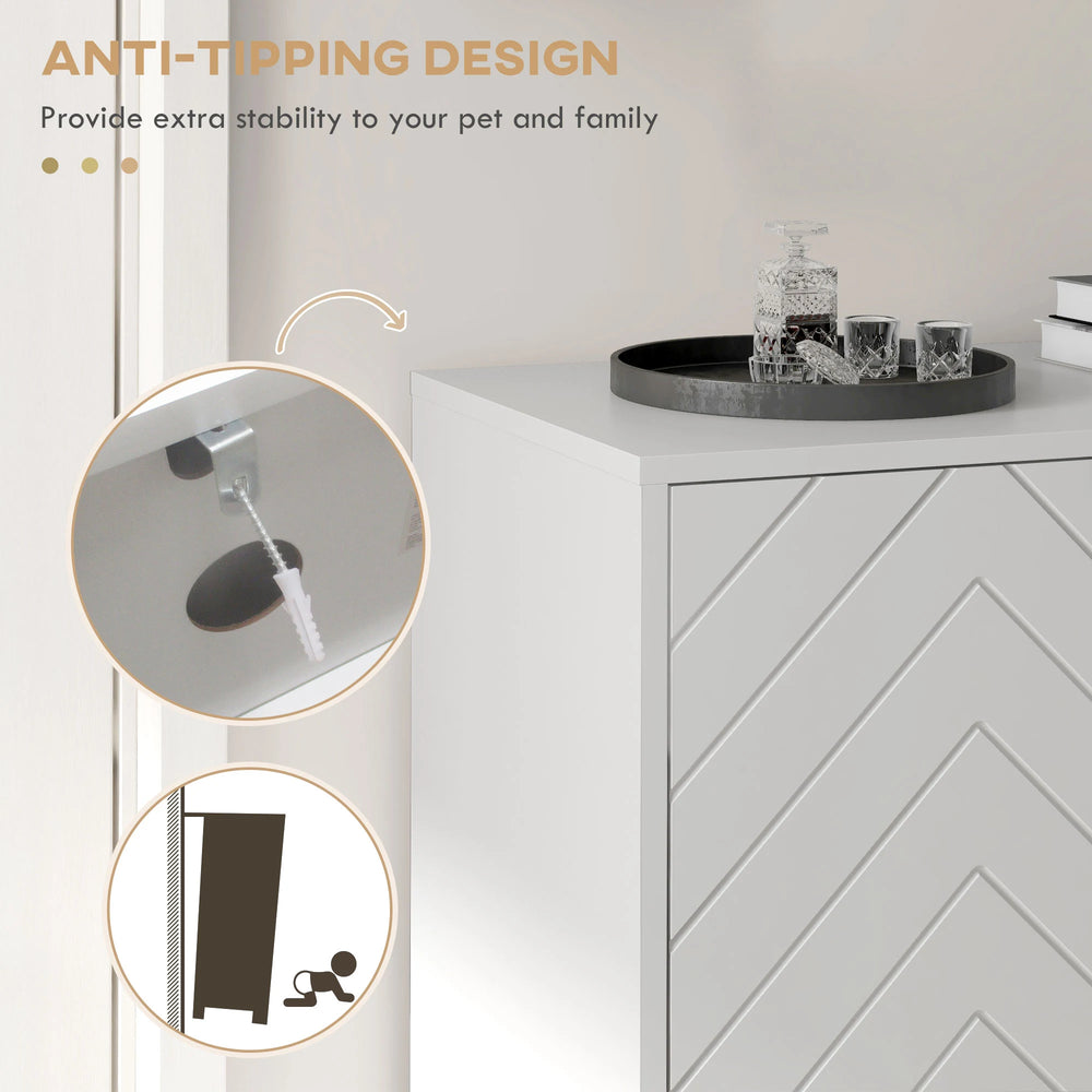 - Unique pattern design: Chevron pattern on the doors of this shoe storage unit bring a subtle touch of character into your space. Gold tone details for elegance.