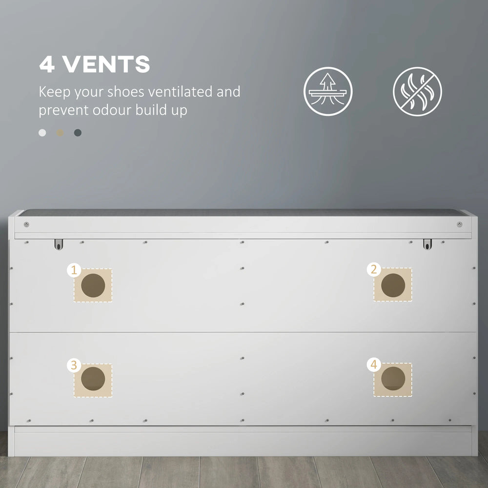 HOMCOM Shoe Storage with Seat, Upholstered Entryway Bench, Shoe Bench with 2 Flip Drawers and 2 Vents for 8 Pairs of Shoes