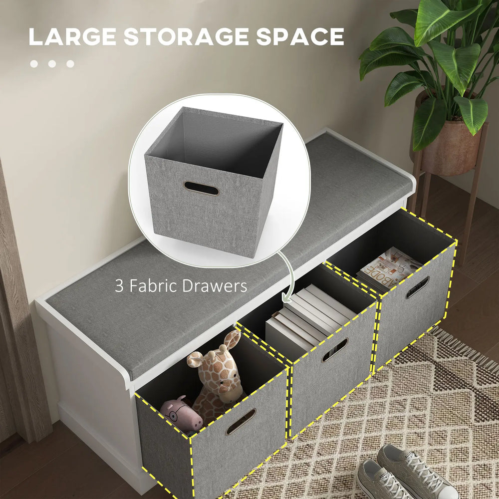 HOMCOM Three-Drawer Shoe Storage Bench, with Padded Top Seat - White