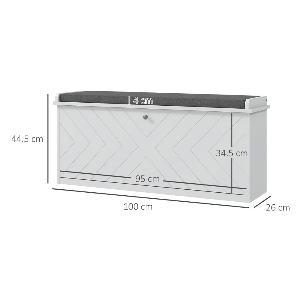 HOMCOM 10-Shoe Storage Bench, with Padded Top Seat - White/Grey
