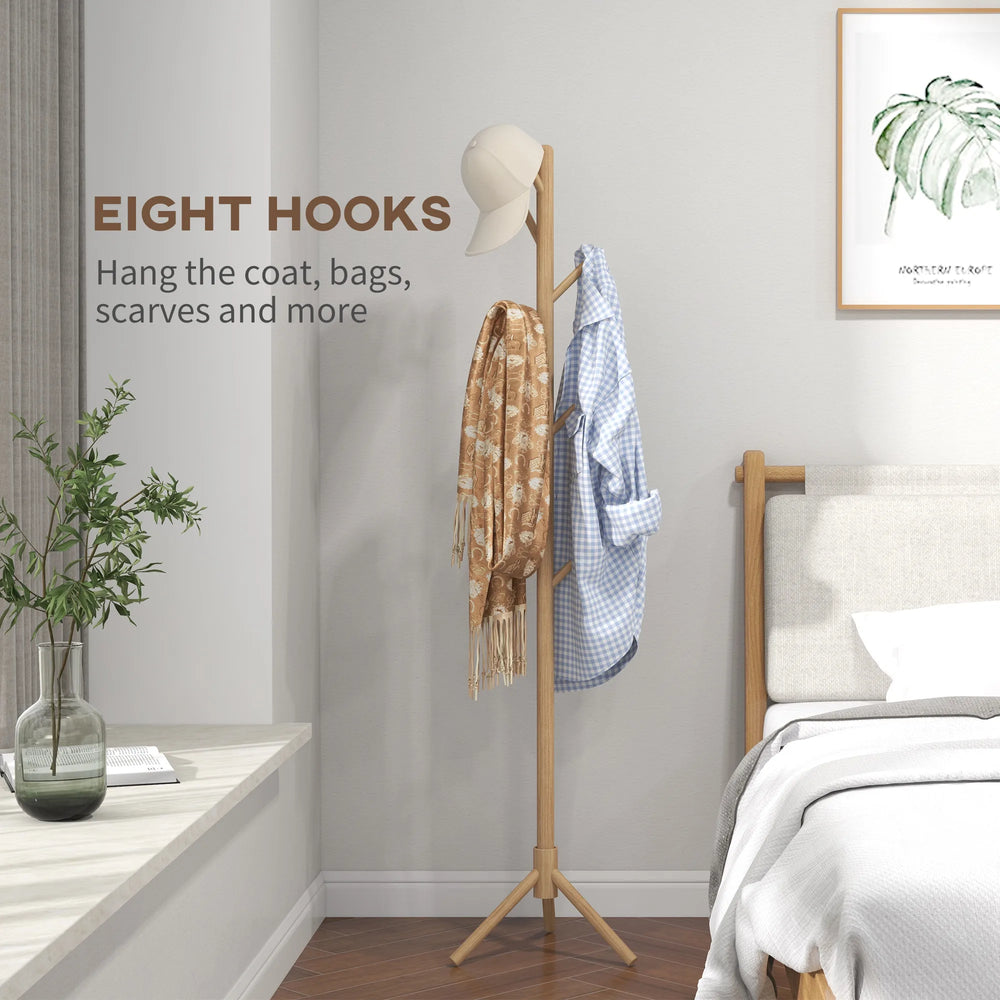 HOMCOM Eight-Hook Wooden Coat Rack - Natural