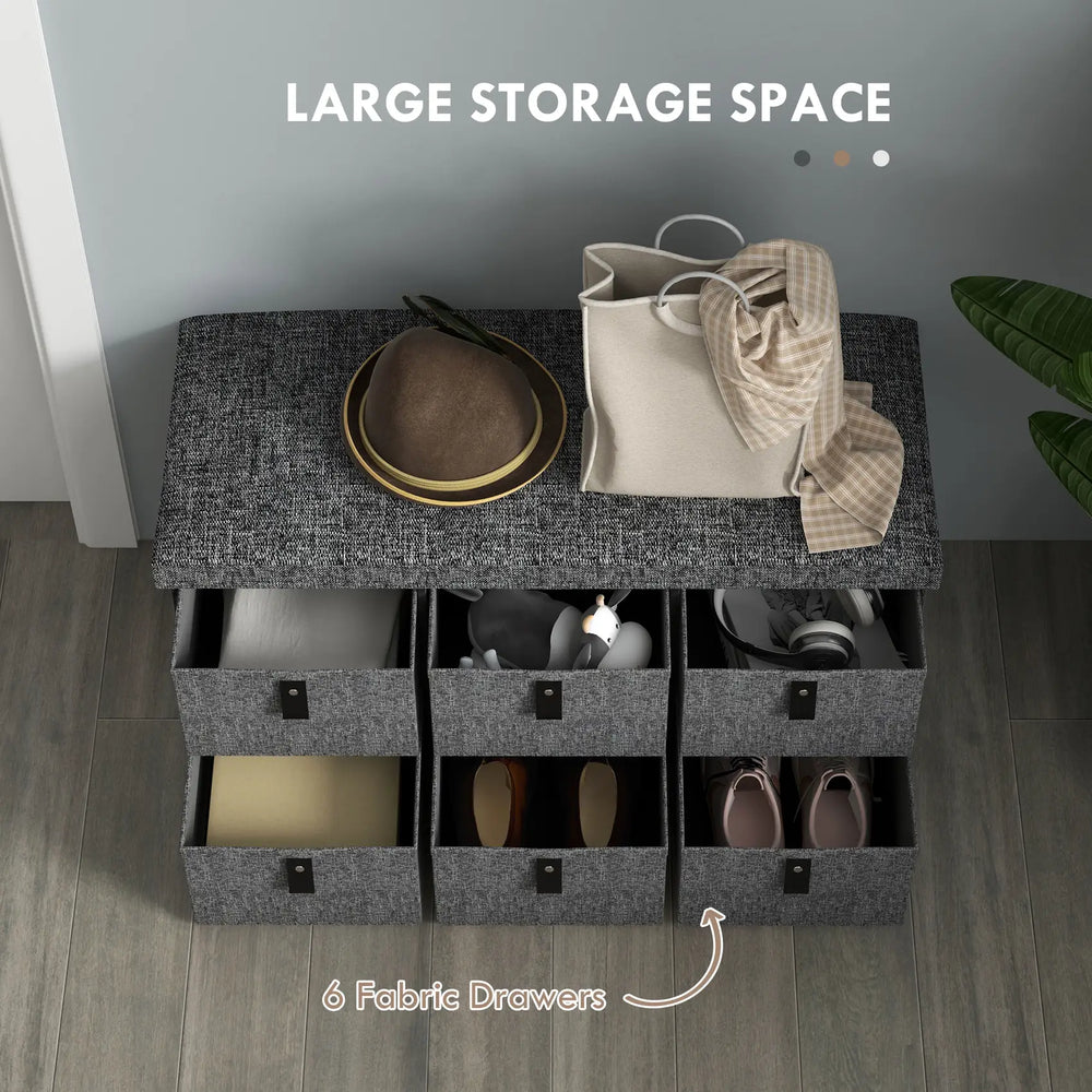 HOMCOM Six-Drawer Shoe Storage Bench, with Padded Top Seat - Dark Grey