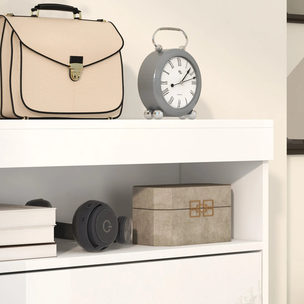 - Anti-tipping straps included: Safely attach this hallway storage unit to a wall. High gloss finish and a handle-free surface, providing a sleek and modern look for your entryway or living space.