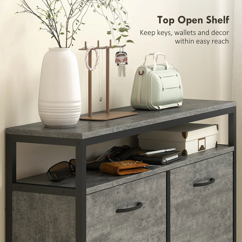 HOMCOM Shoe Storage Cabinet with 4 Flip Drawers and Open Shelf - Cement Grey