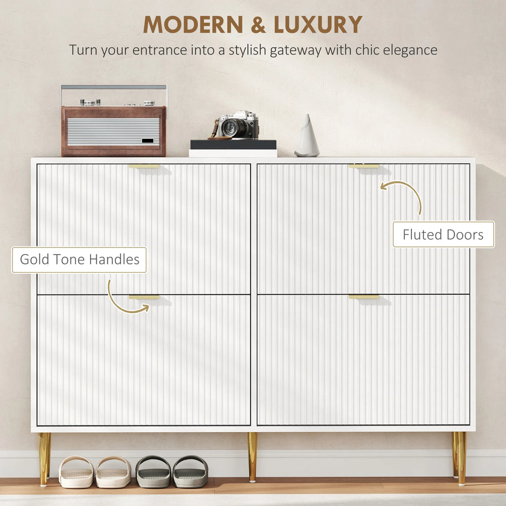 HOMCOM Elegant Four-Drawer Shoe Cabinet - White