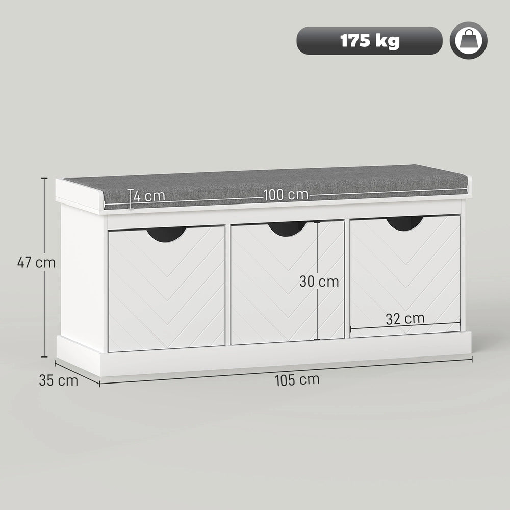 The easy way to keep footwear together, with this HOMCOM shoe bench. With the top removable cushion, you can sit whilst putting on/taking off shoes. Fitted with three drawers, you can keep a pair in each - suitable for individual use. And thanks to its simple white design, this is a versatile piece which looks good in plenty of different home set-ups.