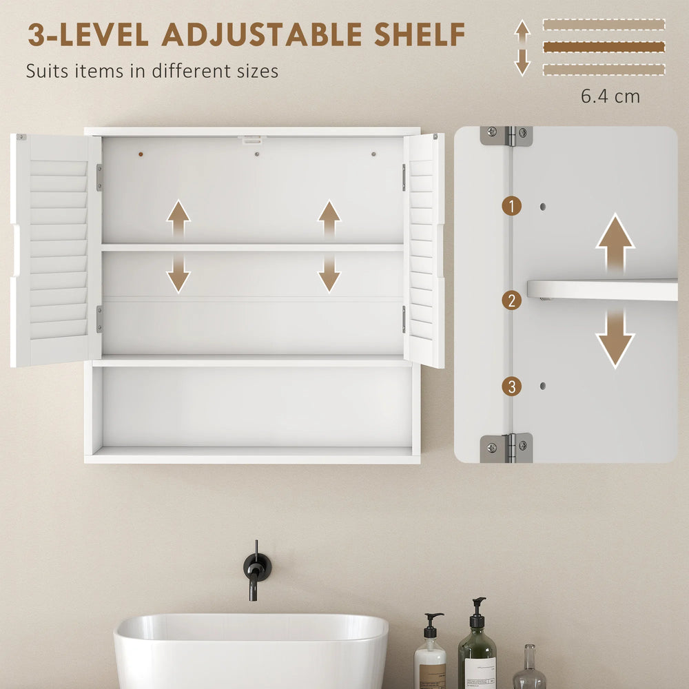 HOMCOM Bathroom Cabinet, Wall Mounted Storage Cabinet with Adjustable Shelves, 60 x 20 x 60 cm, White