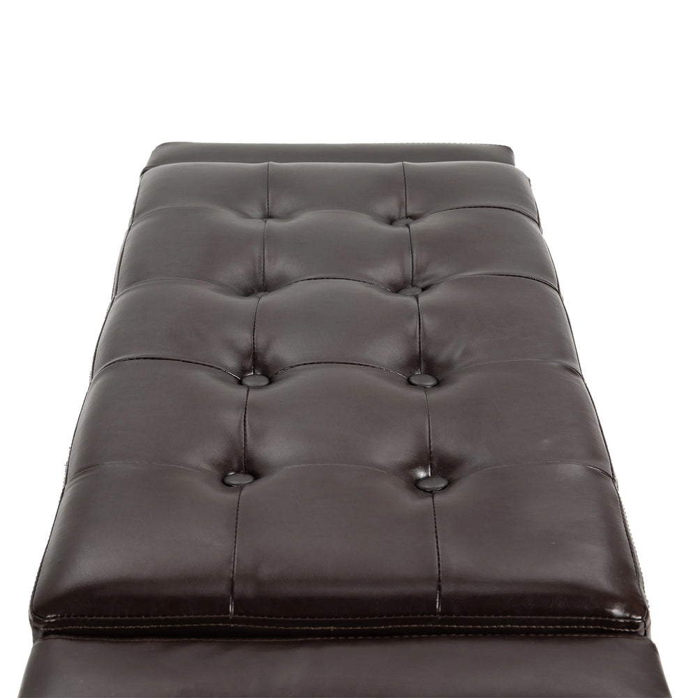HOMCOM PU Leather Storage Ottoman Bench Storage Chest Tufted Ottoman Cube w/ Flipping Top 92L x 40W x 40H cm Brown