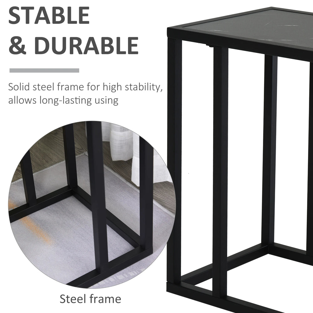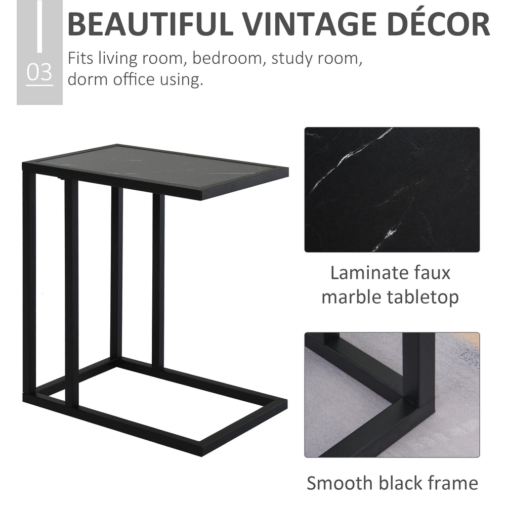 HOMCOM C Shape Bedside Table w/Metal Frame Marble-Effect Top Sofa Narrow Snack End Table for Living Room, Black