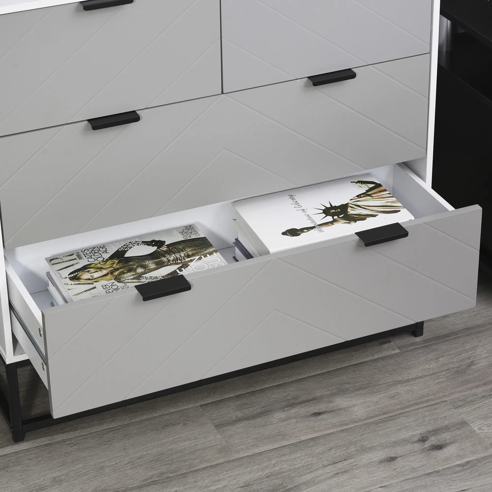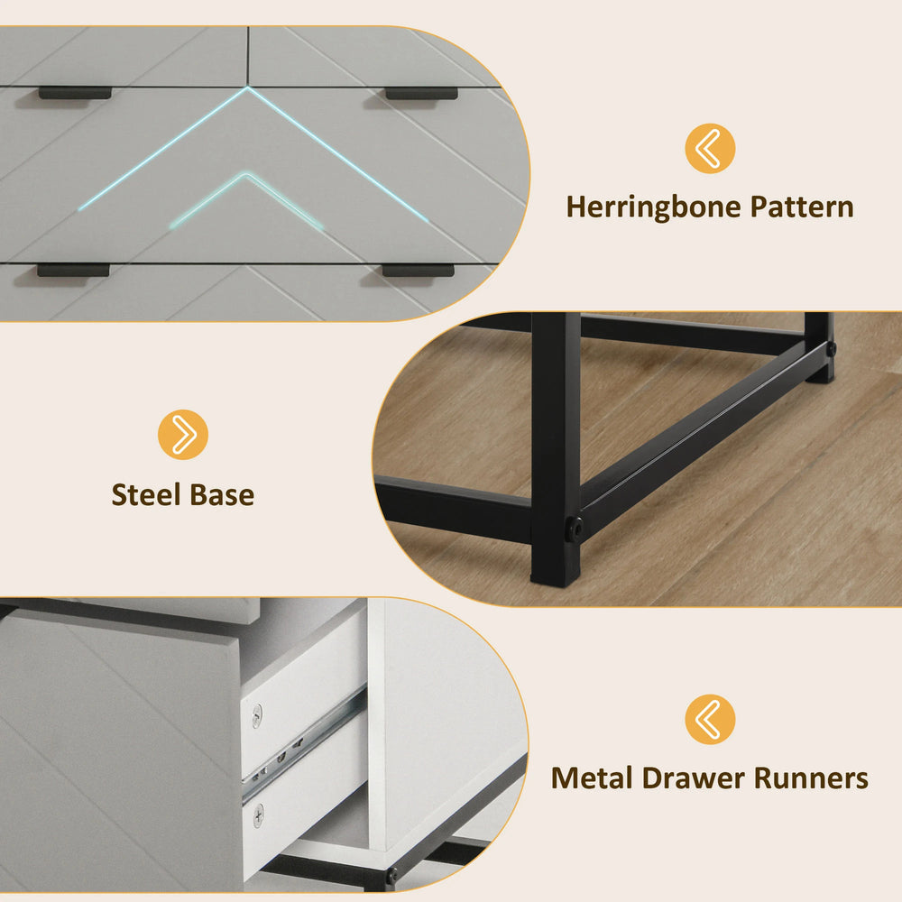 - UNIQUE DESIGN: Embossed chevron pattern on the storage drawers for a cool stand-out look which won't go out of fashion. A great chest of draws to bring into the home and office space. Neutral grey and white colourway.