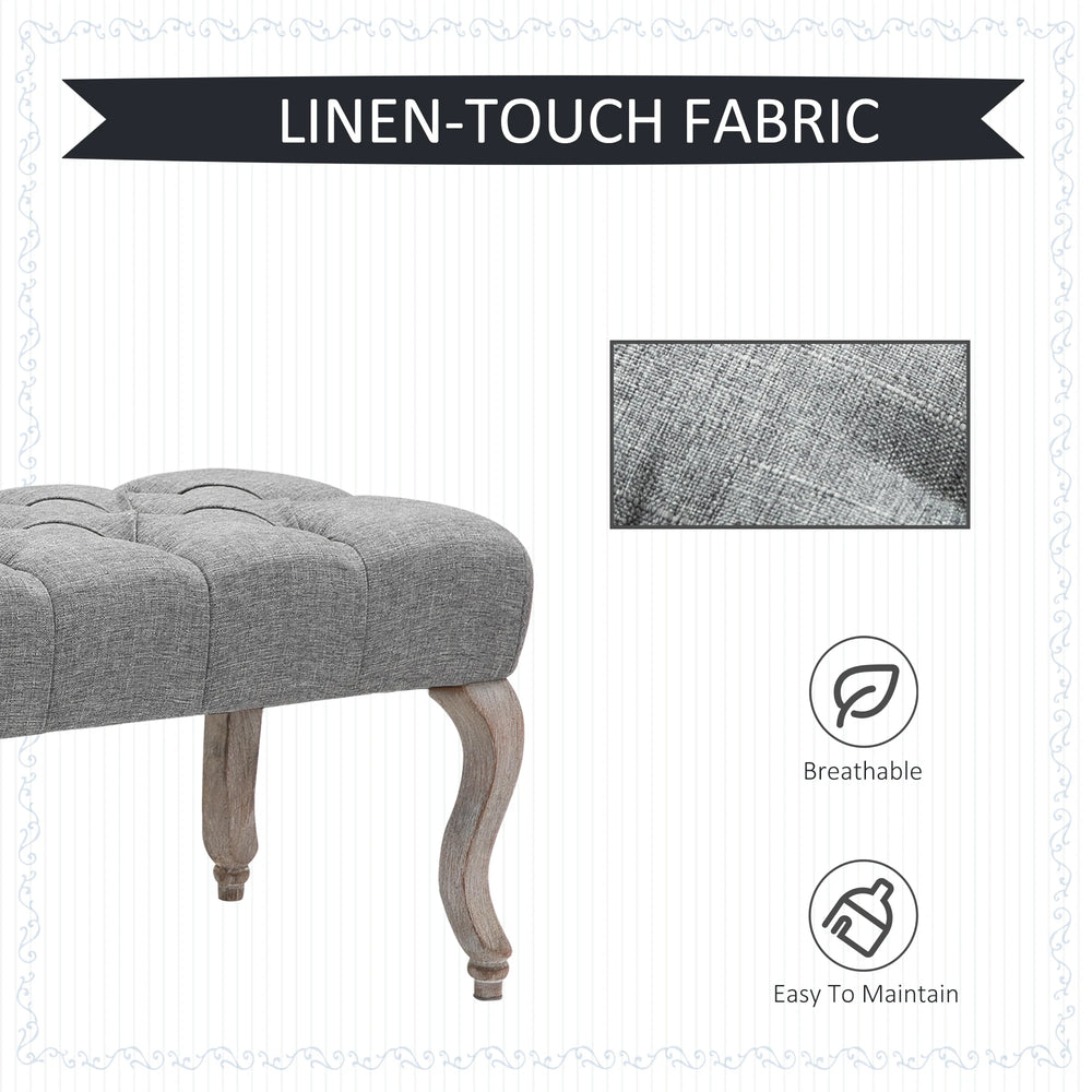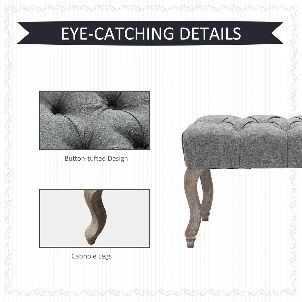 Create an instant and comfortable focal point in your home with this beautiful bench from HOMCOM. The linen-touch upholstery and classic carved legs bring a vintage glamour feeling in your space, with button tufting all over for extra elegance. The soft cushioned seat delivers exceptional comfort. Provide your guests with something extra special - go for this timeless piece from HOMCOM.