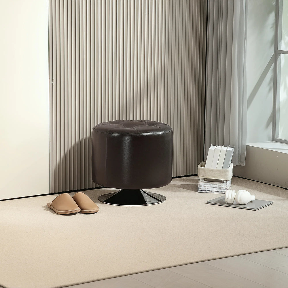 HOMCOM 360 Swivel Foot Stool Round PU Footstool with Thick Sponge Padding and Solid Steel Base, Brown