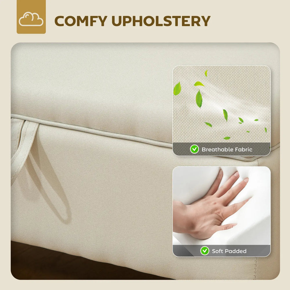 HOMCOM 30L Linen Storage Ottoman Padded Footstool with Rubberwood Legs for Storage Box, Bed End, Shoe Bench, Seating, Beige is backordered and will ship as soon as it is back in stock.