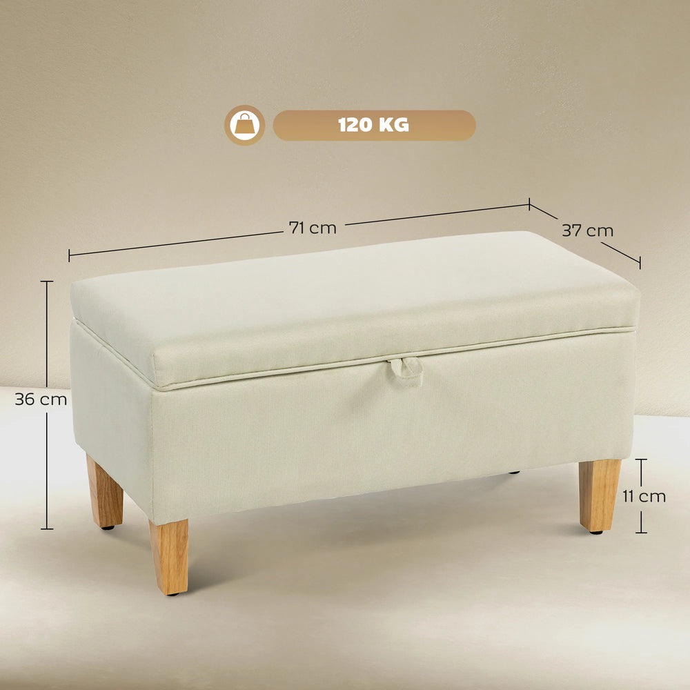 HOMCOM 30L Linen Storage Ottoman Padded Footstool with Rubberwood Legs for Storage Box, Bed End, Shoe Bench, Seating, Beige