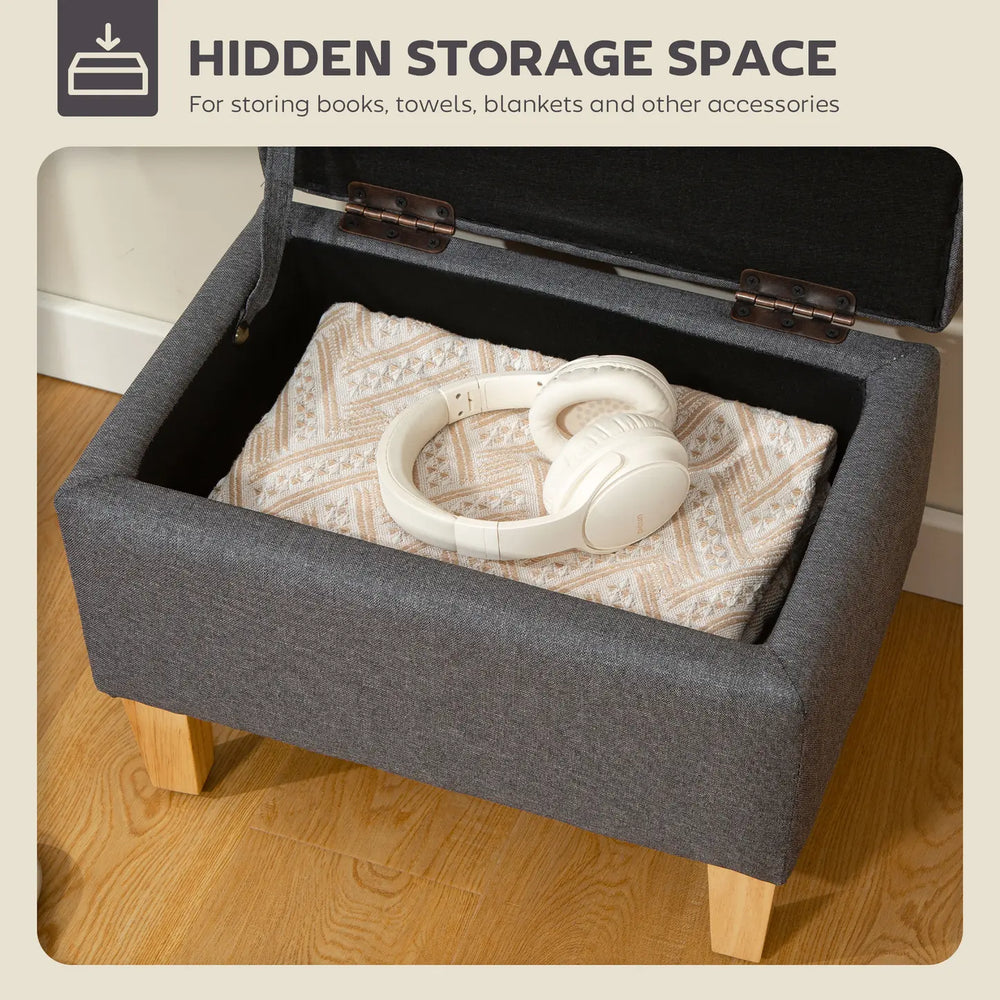 HOMCOM 16L Linen Storage Ottoman Padded Footstool with Rubberwood Legs for Storage Box, Bed End, Shoe Bench, Seating, Charcoal Grey