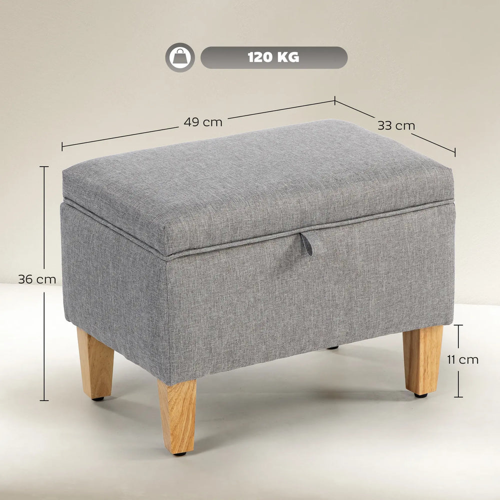 HOMCOM 16L Linen Storage Ottoman Padded Footstool with Rubberwood Legs for Storage Box, Bed End, Shoe Bench, Seating, Light Grey