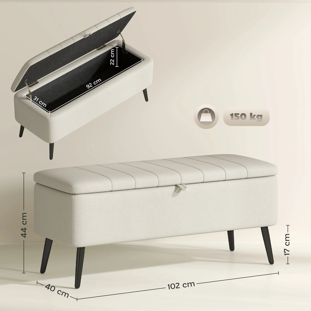 HOMCOM Linen-Look 92 x 31cm Storage Ottoman - Cream White