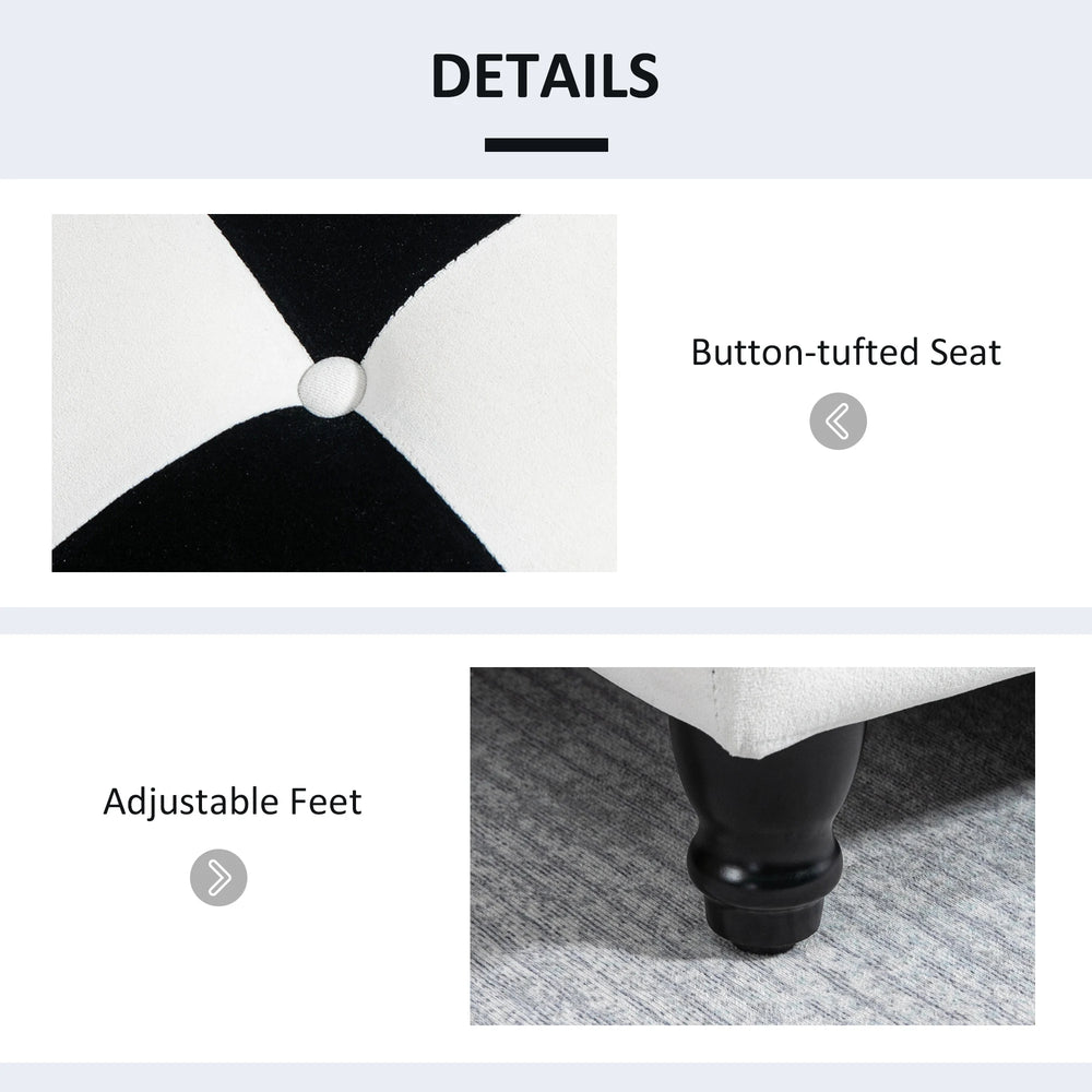 HOMCOM 114 x 47 x 47cm Velvet Storage Ottoman, Button-tufted Footstool Box, Toy Chest with Lid for Living Room, Bedroom, White and Black