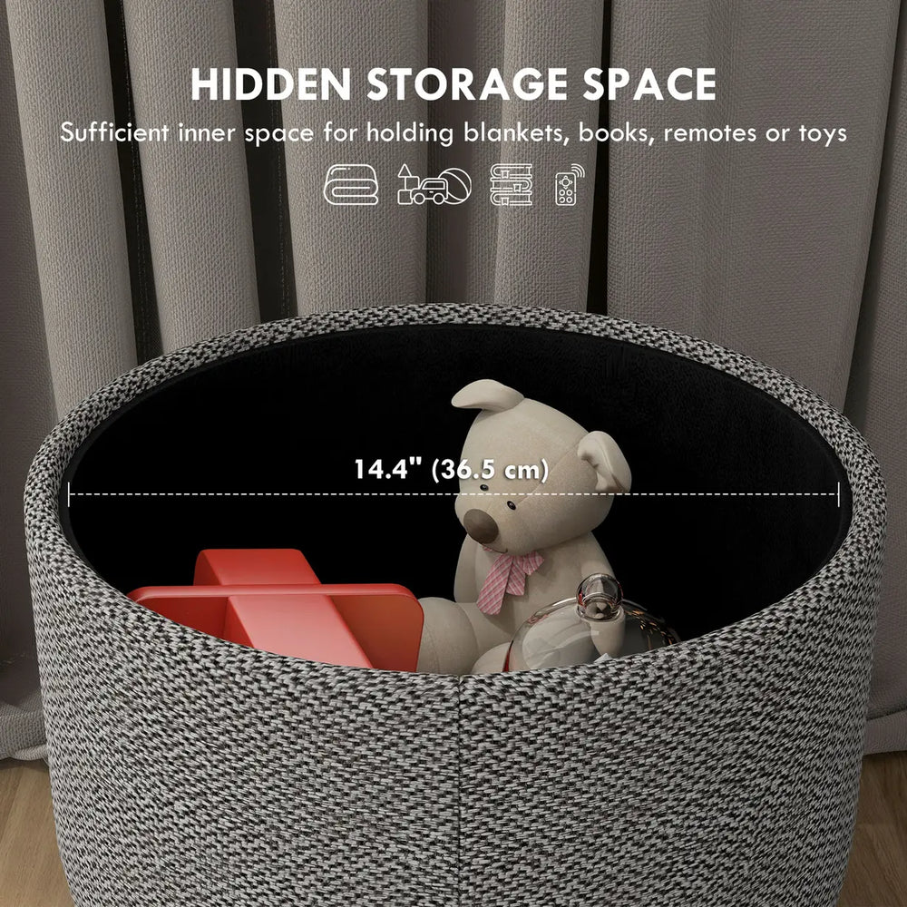 HOMCOM Round Linen-Look Storage Ottoman - Light Grey