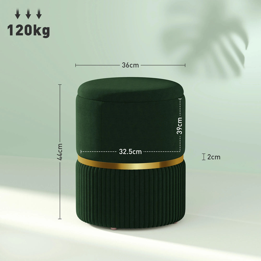 HOMCOM Velvet-Feel Storage Ottoman - Green