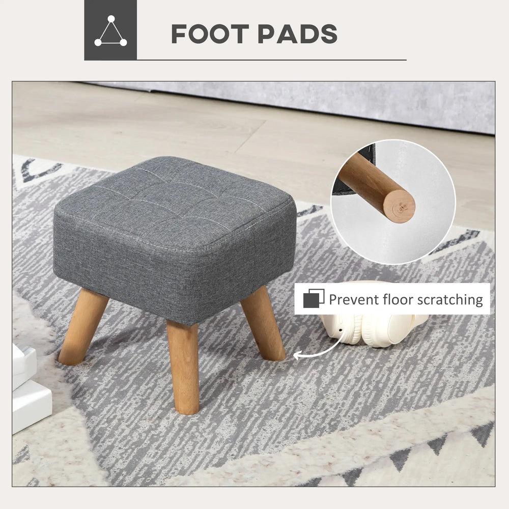 HOMCOM Linen-Look Square Padded Footstool - Grey
